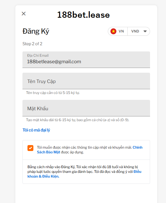 Sau khi kiểm tra lại toàn bộ thông tin, bạn hãy đánh dấu vào ô cam kết đủ 18 tuổi theo quy định. Tiếp đó, nhấn “Đăng ký” và đợi hệ thống xử lý yêu cầu. Chỉ trong vài phút, bạn sẽ nhận phản hồi xác nhận và có thể bắt đầu đăng nhập để trải nghiệm toàn bộ dịch vụ hấp dẫn của 188BET TAPTAP.